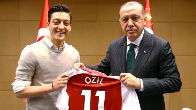 Месут Озил сфотографировался вместе с президентом Турции Реджепом Тайипом Эрдоганом в Лондоне во время благотворительного мероприятия 13 мая 2018 года. Футболиста раскритиковала за снимок не только немецкая пресса, но и местная футбольная ассоциация, поскольку Эрдоган, как заявил руководитель организации Райнхард Гриндель, не разделяет ценности, за которые она борется.
