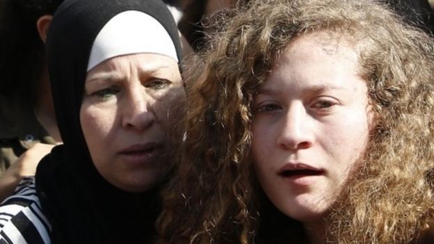 Ахед Тамими стала символом палестинского сопротивления, после того, как в интернете получила вирусное распространение видеозапись, на которой она осыпает ругательствами, пинает ногами и пытается ударить кулаками израильского солдата у ворот ее дома в деревне Наби-Салех.