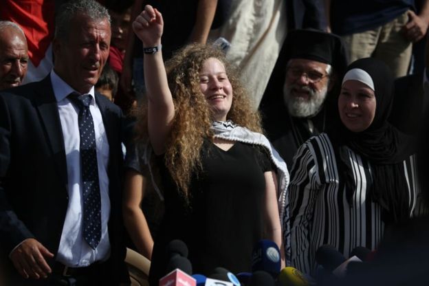 17-летняя палестинская девушка Ахед Тамими, пинавшая ногами и хлеставшая по лицу израильского солдата на оккупированном Западном берегу, вышла из тюрьмы после восьмимесячного заключения. Дома ее встретили как национального героя, сообщает Русская служба BBC.