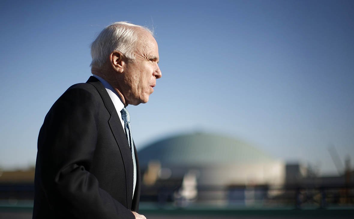 «Мы ослабляем его [величие] когда прячемся за стенами, вместо того, чтобы их рушить, когда мы сомневаемся в силе наших идей вместо того, чтобы доверять им», — зачитал Дэвис прощальные слова Маккейна.