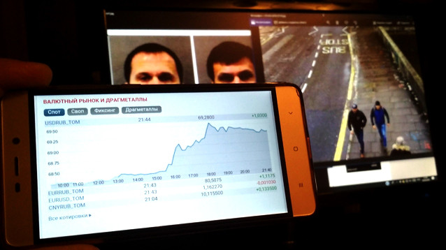 Доллар США и евро ускорили рост на "Московской бирже", а рубль обвалился к бивалютной корзине на опасениях усиления антироссийских санкций, связанных с "делом Скрипалей".