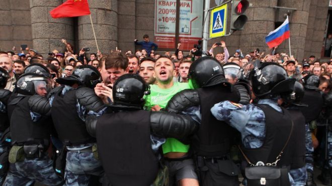 Более тысячи человек задержаны в ходе массовых акций протеста против повышения пенсионного возраста в разных городах России, свидетельствуют данные портала "ОВД-Инфо", сообщает Русская служба BBC.