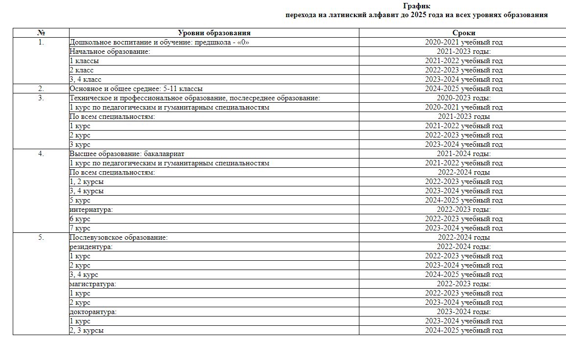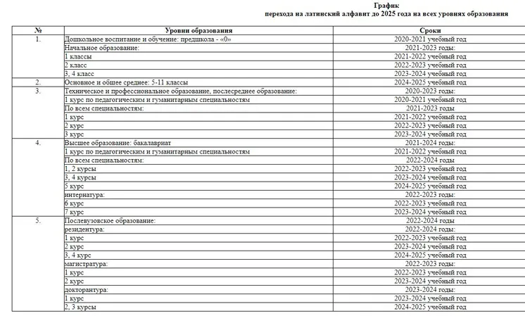 Напомним, в феврале этого года Нурсултан Назарбаев утвердил новый алфавит казахского языка, основанный на латинице, а в апреле министерство образования и науки опубликовало «График перехода на латинский алфавит до 2025 года на всех уровнях образования».