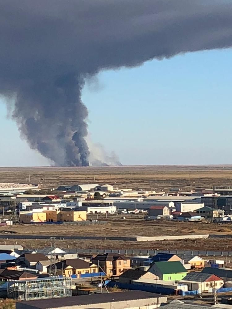Пожар с большой площадью открытого горения начался около 15.00, и уже спустя час практически из любой точки Атырау стал виден огромный клуб дыма, чем-то напоминающий столб смерча.
