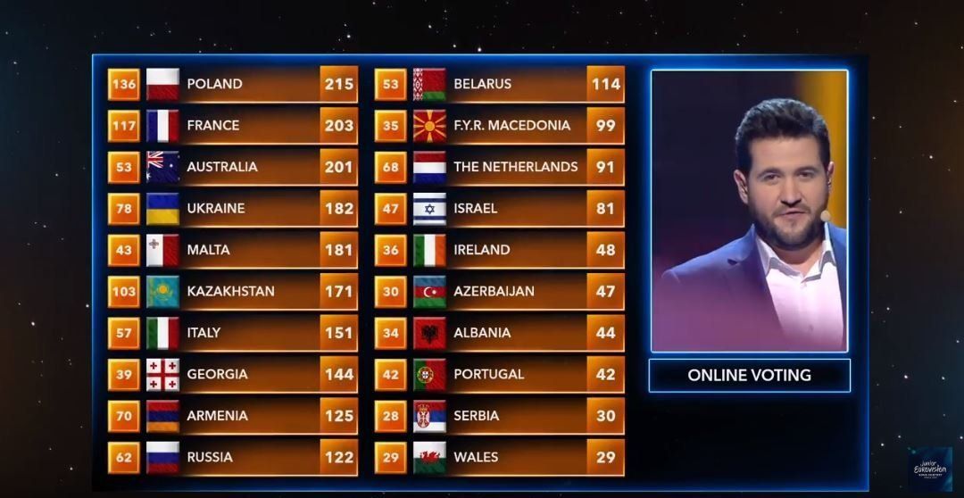 Победу одержала Польша — 215 баллов, на втором месте Франция — 203 балла, третье место у лидеров голосования жюри — Австралии, у которой в итоге оказался 201 балл.