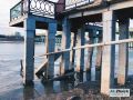 Здесь далеко ходить не надо, изъяны видны уже возле центрального моста на ближайшем пирсе. Например, вместо недостающего полотна ограды на проволоке прикреплена доска. А ступеньки, ведущие к пирсу, уже давно раскрошились и обтёрлись. Некоторые бетонные колонны, составляющие основу пирса, отвалились. Интересно, насколько вообще он устойчив и не опасно ли на нём находиться?