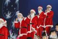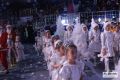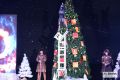 Дети вместе с акимами области и города, другими чиновниками прошли вокруг ёлки хороводом.