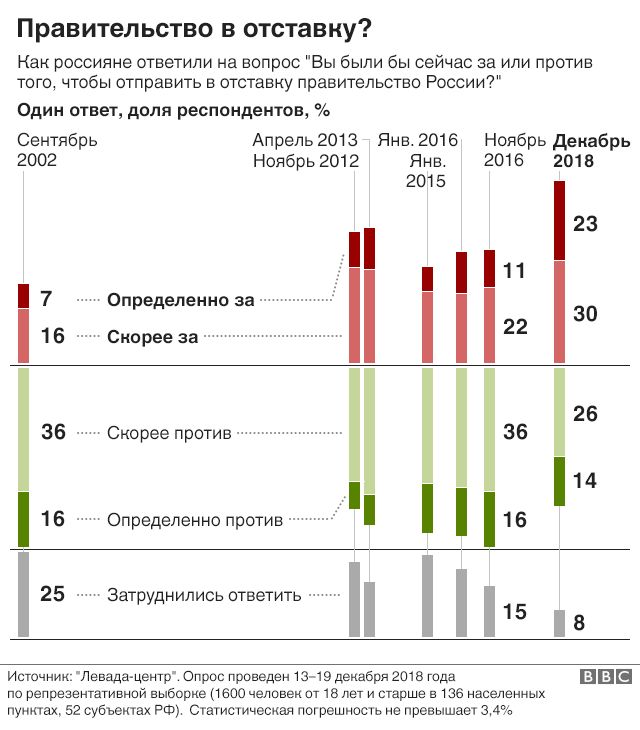 53% россиян поддерживают идею отправить в отставку правительство Дмитрия Медведева, показал опрос социологического "Левада-центра", передает Русская служба BBC.