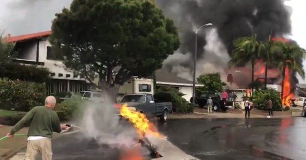 Как отмечается, воздушное судно упало на частный дом в городе Йорба-Линда, в результате чего начался пожар.
