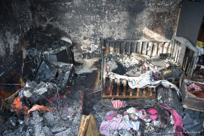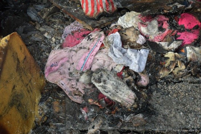 Спасатели прибыли через семь минут после поступления вызова, но дом сгорел полностью - деревянные балки, обшивка, вся мебель и техника. На месте трагедии разбросаны вещи, мягкие игрушки, стоит обугленная кровать.