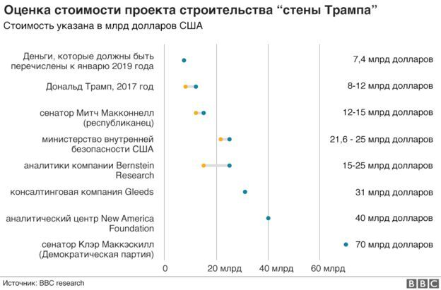 Трамп требовал выделить 5,7 млрд долларов на проект строительства стены на границе с Мексикой. Сама эта идея содержалась еще в предвыборных обещаниях Трампа, правда, тогда он отмечал, что расходы на строительство должна взять на себя Мексика, но она отказалась от такого предложения.