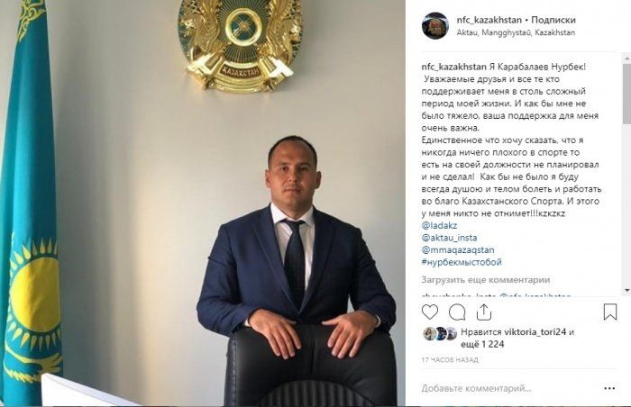 «Я - Карабалаев Нурбек! Уважаемые друзья и все те, кто поддерживает меня в столь сложный период моей жизни. И как бы мне не было тяжело, ваша поддержка для меня очень важна. Единственное, что хочу сказать, что я никогда ничего плохого в спорте, то есть на своей должности, не планировал и не сделал! Как бы ни было, я буду всегда душою и телом болеть и работать во благо Казахстанского спорта. И этого у меня никто не отнимет!», - говорится в сообщении.
