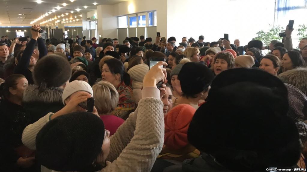 Ранее пришедшие в зал «Астана» потребовали встречи с акимом города Бахытом Султановым. Они заявили, что отказываются говорить с находящимися на месте чиновниками управлений, от которых, по их мнению, не зависит принятие решений, и настаивают на встрече с Султановым.