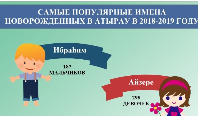 А давайте посмотрим, какие имена «в тренде» в нефтяной столице сегодня. По информации городского отдела РАГС, в период с 1 января 2018 года по 15 февраля 2019 года в Атырау родилось 11 719 детей. Первое место среди мальчиков держит имя Ибрагим (187), среди девочек Айзере (298).