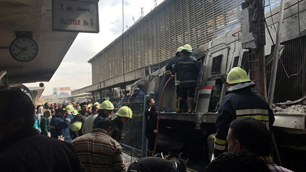 Источник в Министерстве транспорта Египта рассказал РИА Новости, что поезд столкнулся с каким-то препятствием при заходе на седьмую платформу на вокзале Рамсис, из-за чего в локомотиве произошел взрыв и пожар. Погибли порядка 20 человек, столько же пострадали. В основном это люди находившиеся на платформе, уточнил собеседник агентства.
