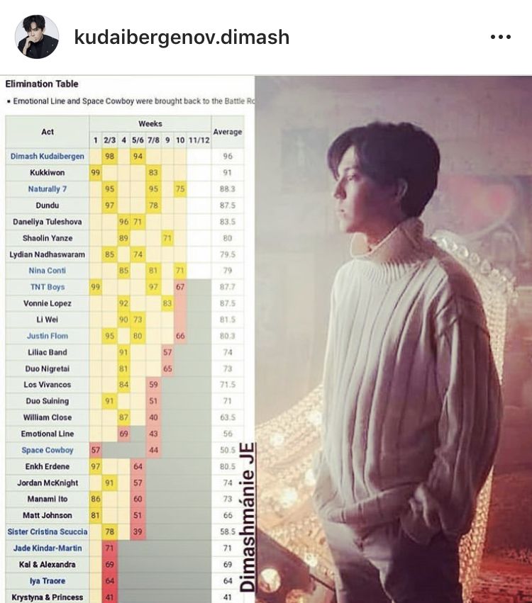 Певец Димаш Кудайбергенов опубликовал результаты участников шоу "The World's Best" перед финалом, сообщает Zakon.kz.