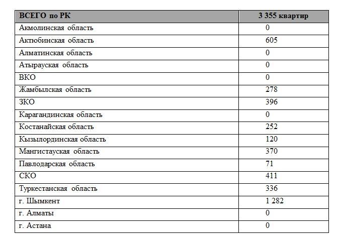 Самое большое количество доступных квартир для "7-20-25" будет выделено в Шымкенте (1 282 квартиры), Актобе (605 квартир) и СКО (411 квартир).