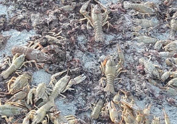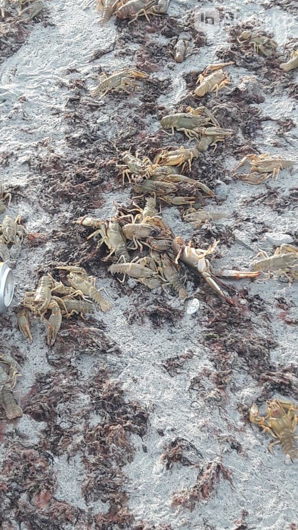 В редакцию сайта прислали видео, как сотни раков оказались на берегу Каспия и быстро стали добычей местных жителей.