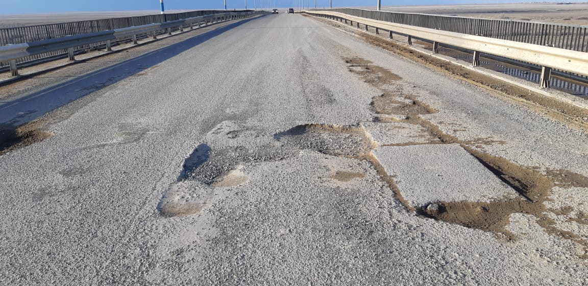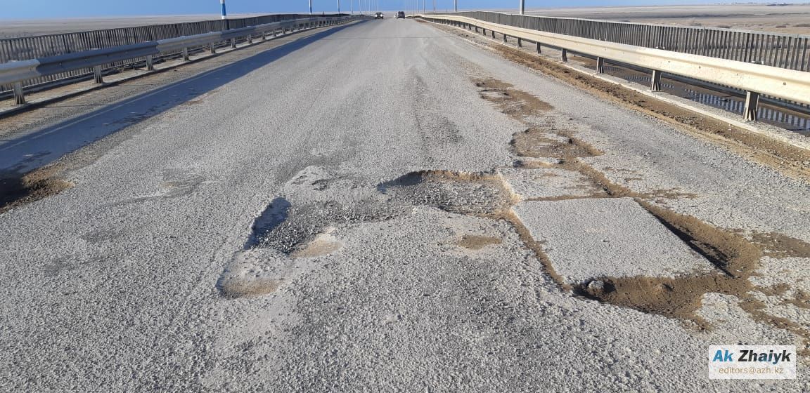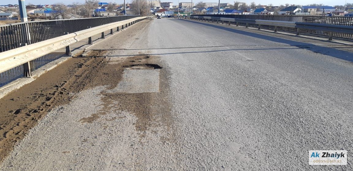 -Транзитные большегрузные автомобили едут по этому мосту, следуя из Уральска в Атырау, они и рушат покрытие, - говорят местные жители.