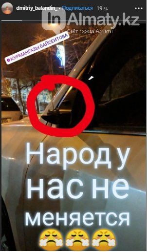 В квадрате улиц Курмангазы, Абылайхана и Байсеитова у олимпийского чемпиона по плаванию Дмитрия Баландина сняли боковое зеркало с автомобиля. В этом же районе год назад убили Дениса Тена, передает inAlmaty.kz.