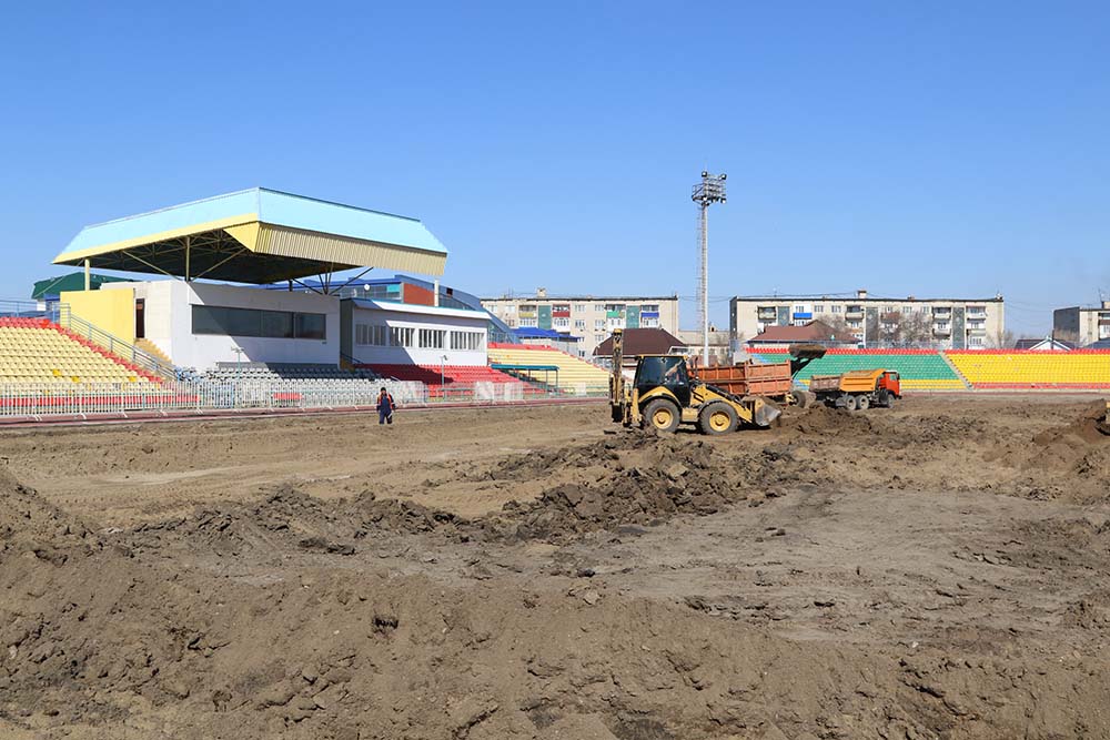 На стадионе «Мунайши» полным ходом ведутся работы по реконструкции футбольного поля.