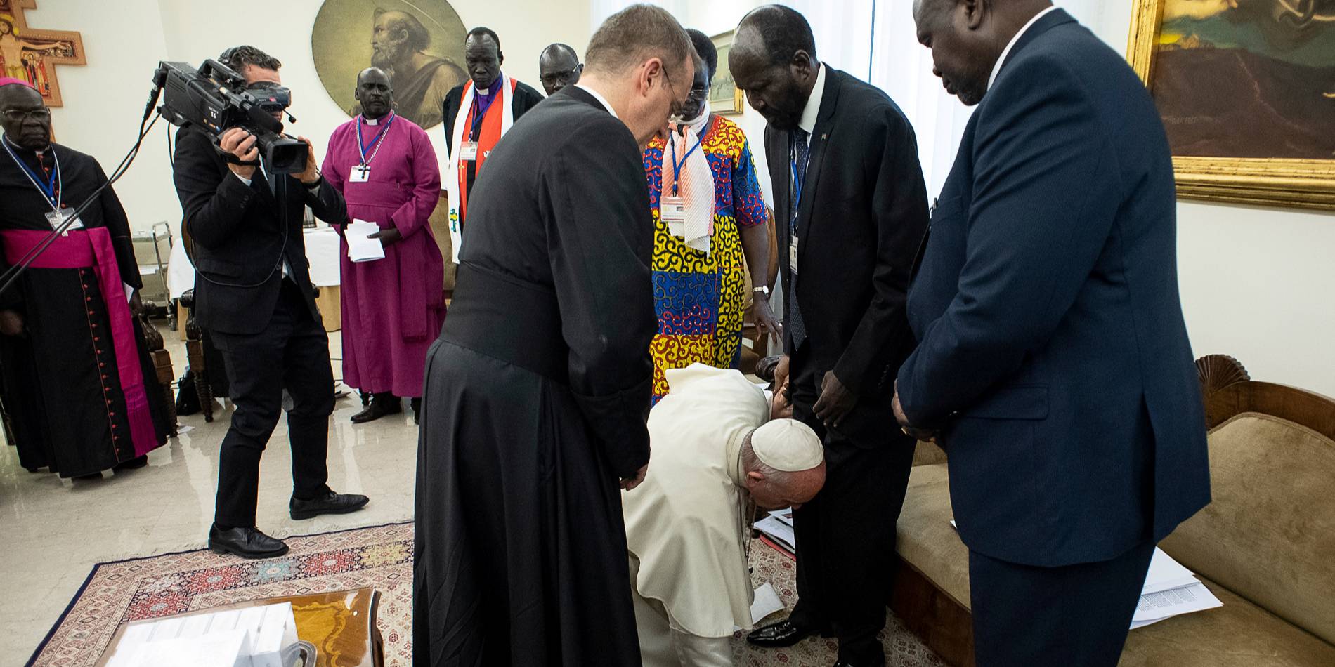 В Ватикан приехали президент Южного Судана Салва Киир и четыре из пяти вице-президентов, среди которых бывший лидер оппозиции Риек Машар Тени, а также религиозные иерархи. Их всех лично пригласил Папа Римский.