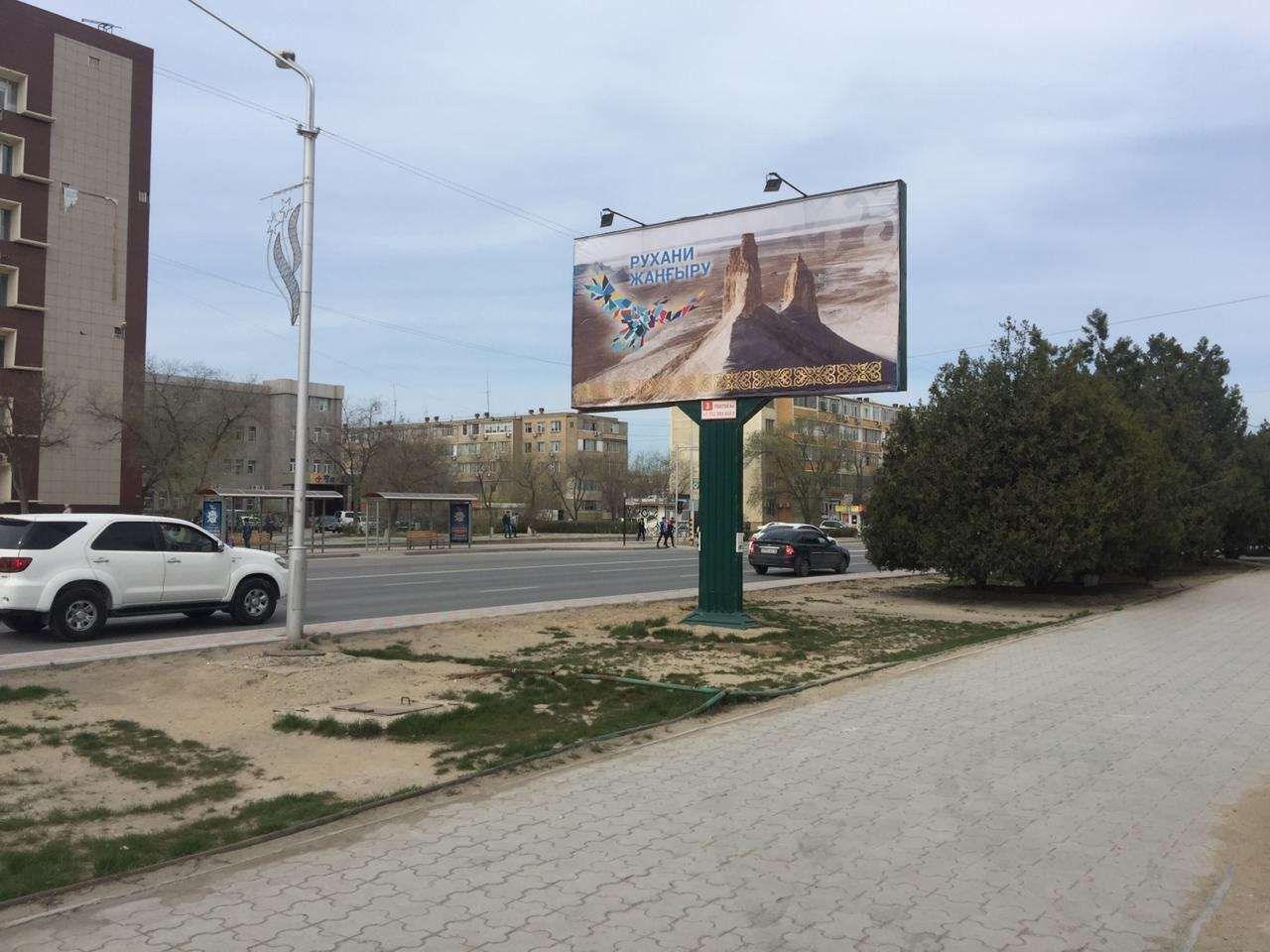 На их месте городские власти установили рекламные щиты с логотипом программы "Рухани жаңғыру" на фоне живописных мест Казахстана.