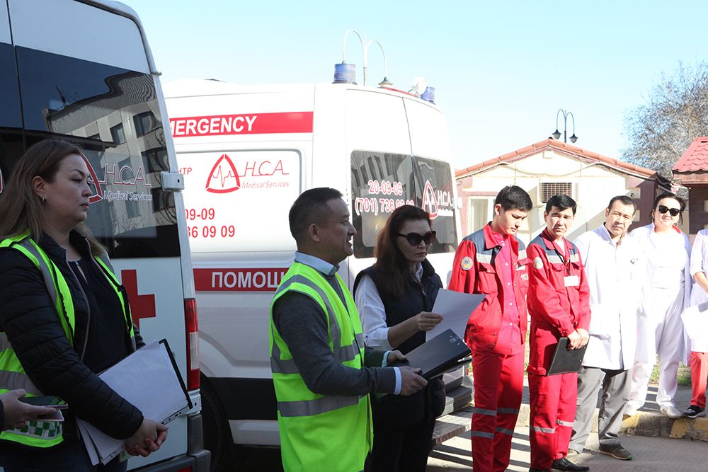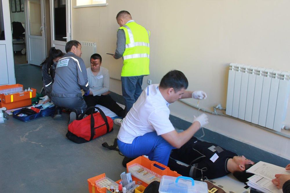 Компания «Норт Каспиан Оперейтинг Компани Н.В» задействовала более 50 врачей, медсестер, водителей карет скорой помощи и даже загримированных актёров, чтобы провести масштабные медицинские учения.