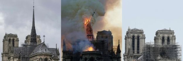 Пожар начался 15 апреля в 18:50 по местному времени (16:50 по Гринвичу, 19:50 мск), и полностью потушить собор удалось лишь к утру вторника. В результате пожара рухнул главный шпиль и кровля собора, сильно пострадал и интерьер.