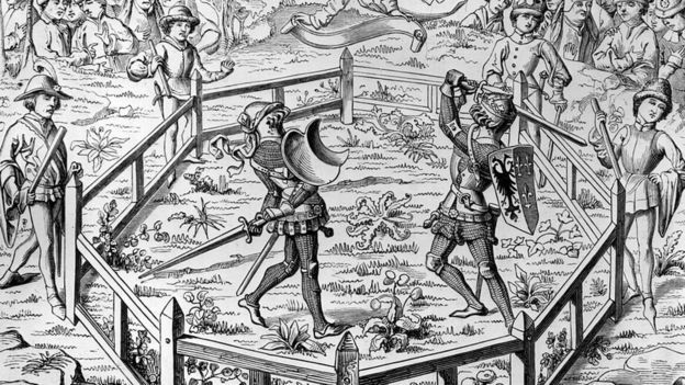 Такая ситуация - не плод воображения Мартина. Судебный поединок в средневековой Европе был полноценным юридическим механизмом.