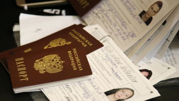 Как вспоминает один из местных жителей, с которым поговорила Би-би-си, за несколько месяцев до конфликта на территории республики появились люди с бланками и, получив определенный набор документов, выдавали российские паспорта.