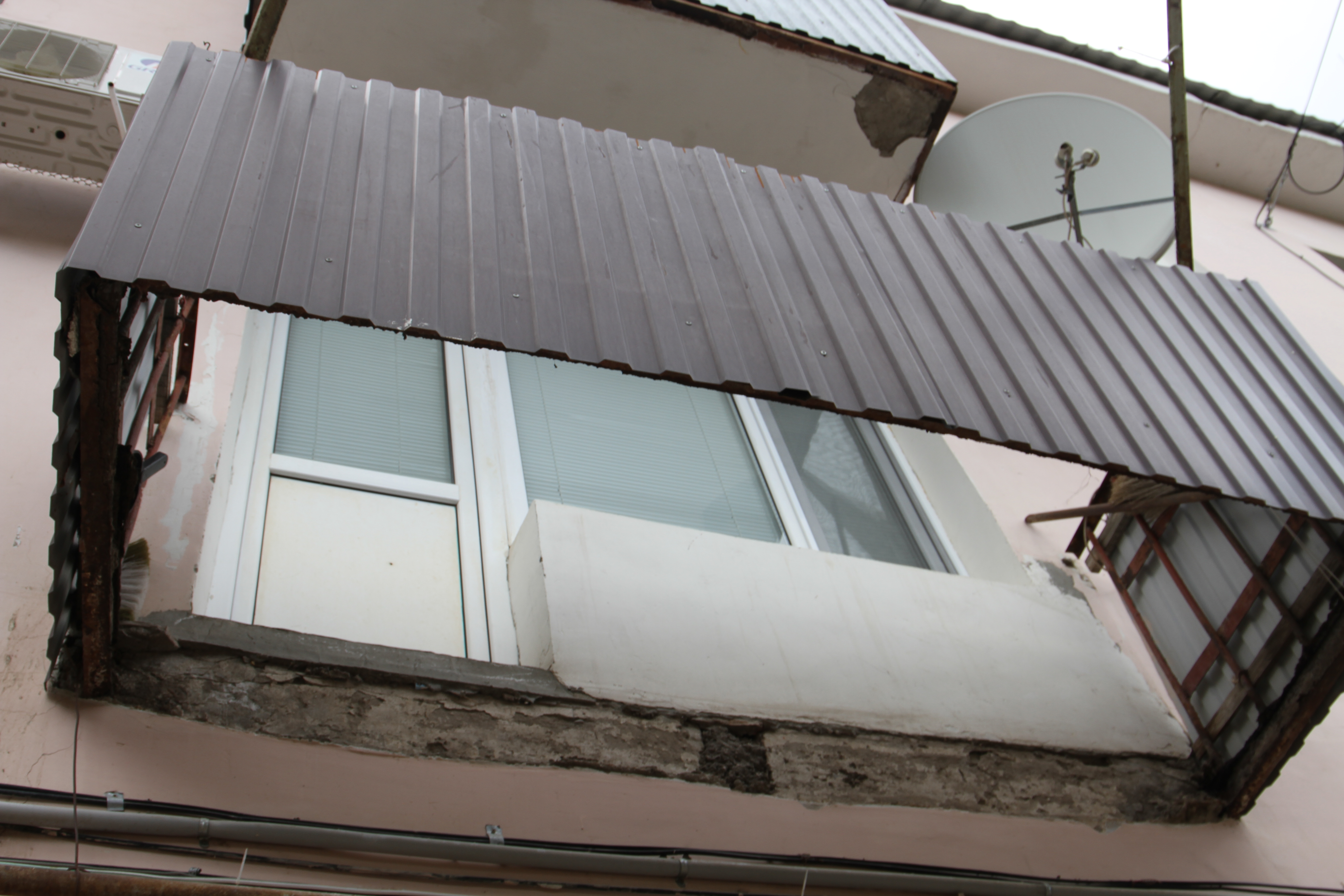 По его словам, дом фактически находится в аварийном состоянии, и в скором времени может обвалиться не только балкон, но и развалиться сам дом: