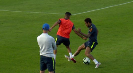 Во время тренировки сборной Бразилии произошел забавный инцидент с участием форварда "Пари Сен-Жермен" Неймара и 19-летнего защитника "Крузейро" Вевертона, сообщает tengrinews.kz.