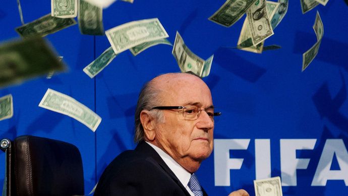 В мае 2015 года в ФИФА разгорелся крупный коррупционный скандал. Семерых высокопоставленных футбольных чиновников арестовали за коррупцию. Блаттер и экс-президент Союза европейских футбольных ассоциаций (УЕФА) Мишель Платини были отстранены от футбольной деятельности. Основанием для дисквалификации стали действия Блаттера в 2011 году, когда он перевел 2 млн швейцарских франков (около €1,8 млн) из средств ФИФА на счет Платини.