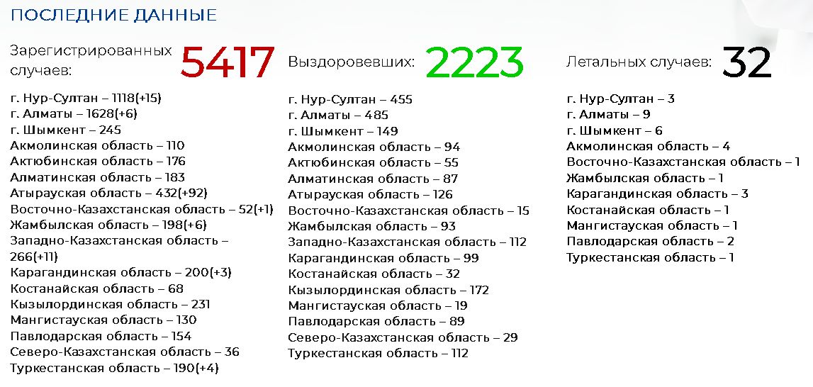 Итого зарегистрированных случаев в Казахстане - 5417.