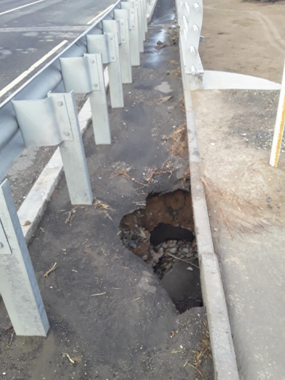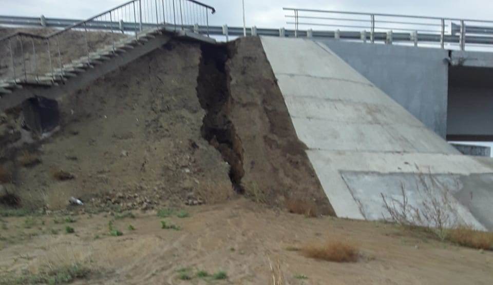 По данным Махамбетского районного отдела ЖКХ, транспорта и автомобильных дорог, потрескался асфальт тротуарной части моста, и образовалась впадина. Специалисты генерального подрядчика – ТОО «Атырауинжстрой» (подрядчиком было ТОО «Энергомост») – сейчас ведут проверку. Гарантийный срок этого объекта 5 лет, поэтому неполадки будут устранены подрядчиком.