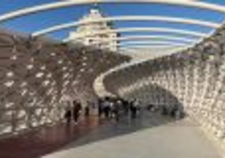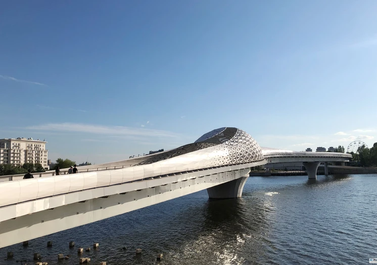 Пешеходный мост был возведён компанией BI Group за полгода. Общая длина 313,5 метра, ширина – 10,5 метра. Сооружение включает в себя шестиметровую пешеходную полосу и трехметровую велодорожку. Вес металлоконструкции – 1 920 тонн.