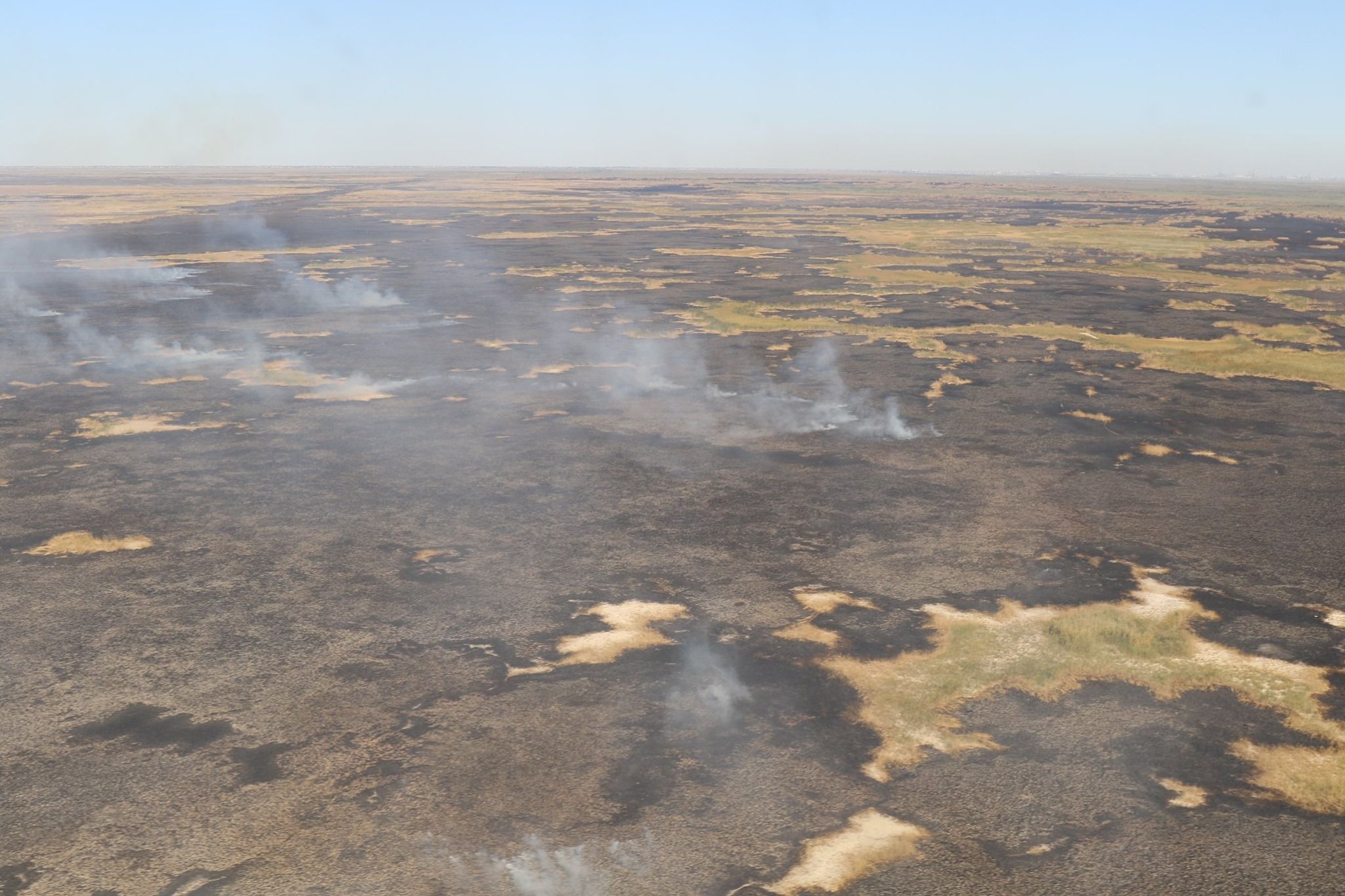 Когда горит прибрежный камыш, тушить его на земле невозможно – там болото, ни техника, ни сотрудники не смогут приблизиться к огню. Тогда что, просто ждать, пока всё выгорит? Нет, это не совсем так, – сообщили в ДЧС Атырауской области.