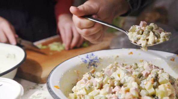 "Оливье или другие многокомпонентные салаты можно хранить 2-3 дня. Первое правило – не заправлять их сразу же, делать это исключительно перед подачей. К тому же надо все готовить и держать раздельно: морковь, картофель и все остальное. Смешивать салат нужно также только перед заправкой", – советует эксперт.