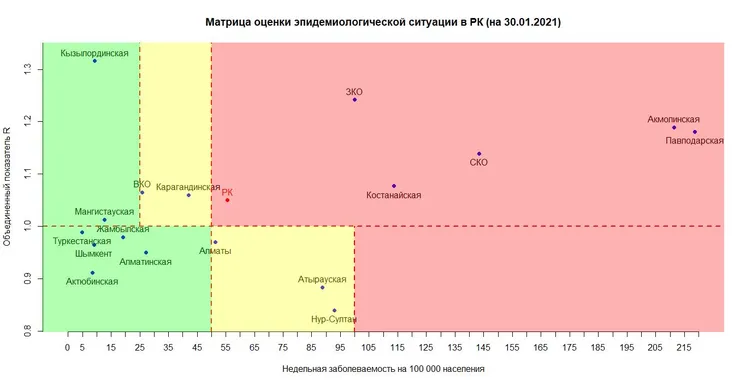 Согласно матрице оценки эпидемиологической ситуации на 30 января, Атырауская область перешла в «желтую зону».