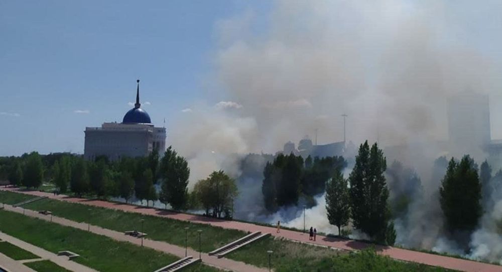 Тополиный пух горит в центре столицы, в дыму оказалась резиденция президента Акорда, передает Sputnik.kz.