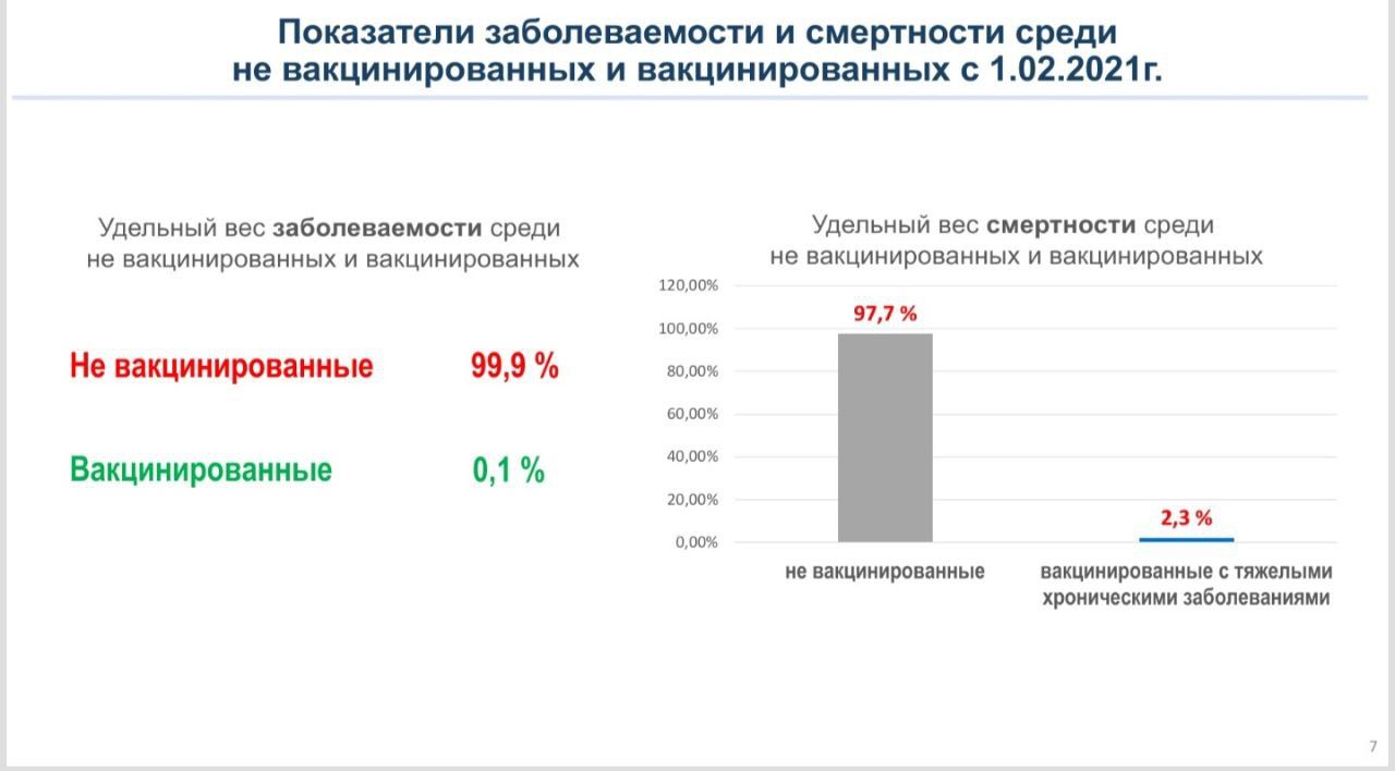 Удельный вес летальности от COVID-19 среди непривитых составил 97,7%, тогда как на вакцинированных приходится 2,3%, при этом вакцинированные имели тяжелые хронические заболевания», - сказал Цой.
