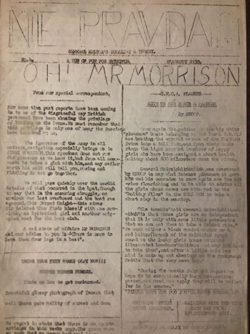 В Архангельске британские военнослужащие проживали в общежитии на улице Карла Маркса. Еще одним их развлечением стало издание любительской сатирической газеты NE PRAVDA. Обыгрывая в названии главную газету СССР и одновременно подчеркивая шутливый характер заметок, матросы описывали свою жизнь на севере как "океан безмятежности".