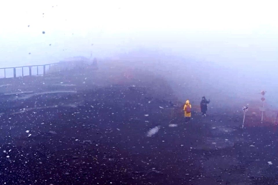 Жители и туристы снимают на видео белые хлопья, что сыпятся с неба уже не один час