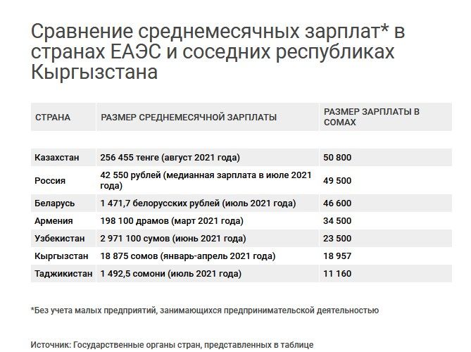 Sputnik Кыргызстан сравнил размер средней зарплаты в ЕАЭС.