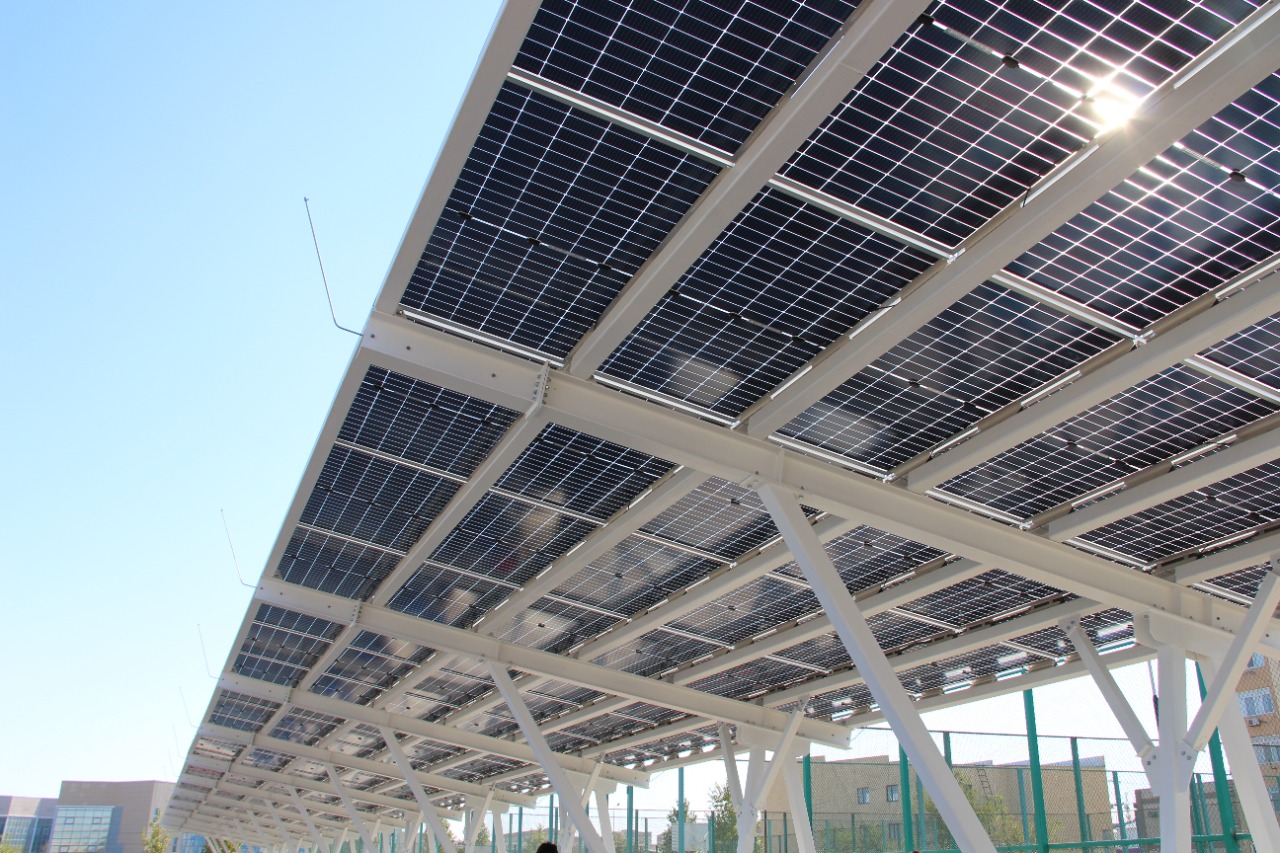 На территории Назарбаев Интеллектуальной школы города Атырау строительство солнечных панелей было начато в мае 2021 года.
