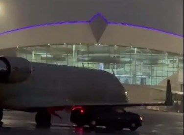 Пользователи соцсетей и паблики Instagram делятся фото и видеороликами, на которых, вероятно, автомобиль одной из служб Международного аэропорта Алматы въехал под крыло небольшого самолета и застрял. На месте работают полицейские, передает Sputnik.kz.