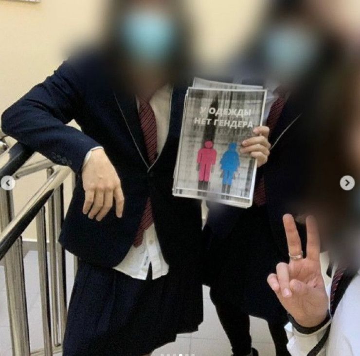 Ученики Назарбаев интеллектуальной школы (НИШ) в Алматы провели акцию с лозунгом "У одежды нет гендера" после случая с суицидом школьника, передает Tengrinews.kz.