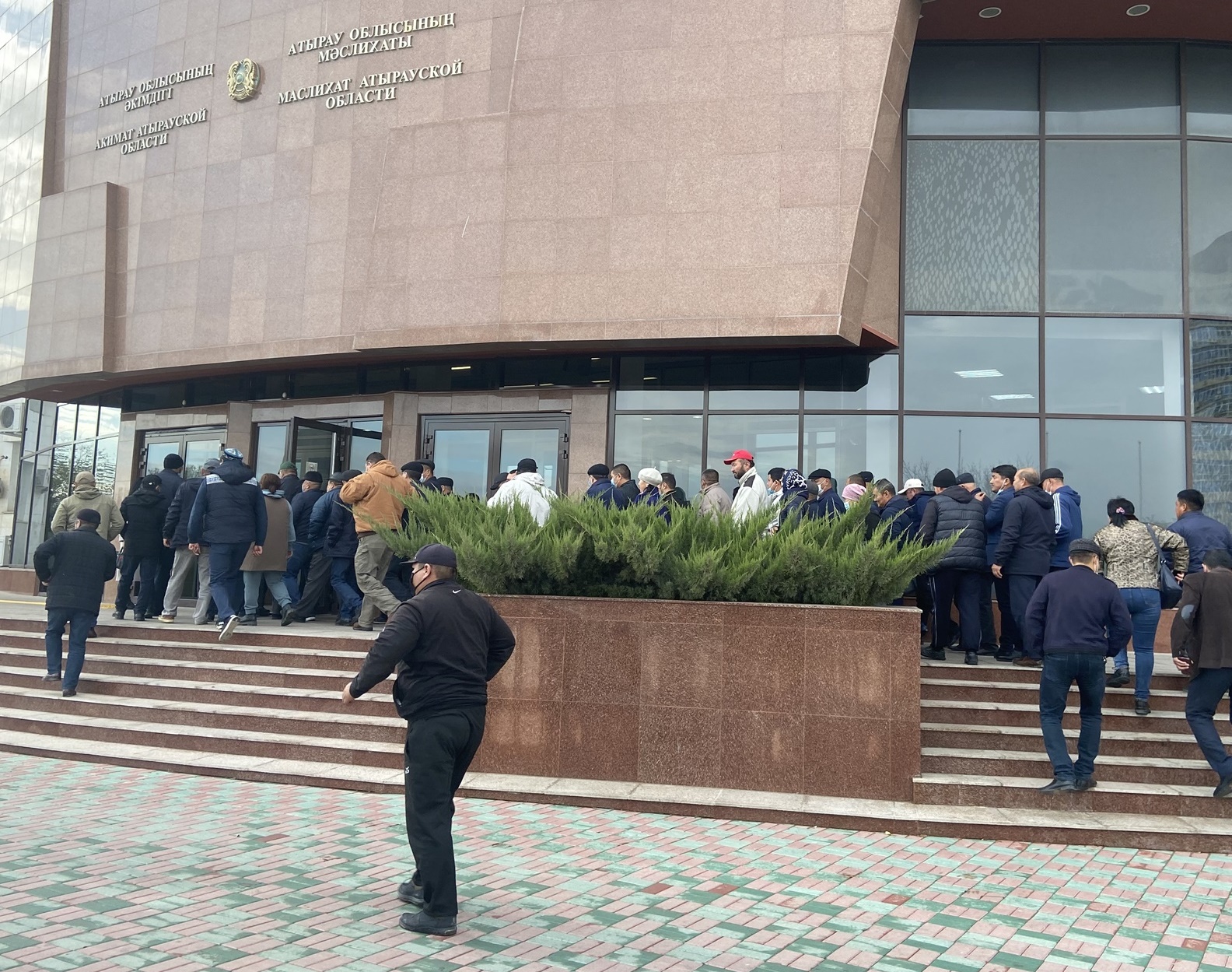 Среди примерно 20 фермеров, собравшихся на площади перед облакиматом, был эксперт в области сельского хозяйства Алмасбек САДЫРБАЕВ. Прямо оттуда он записал видеообращение к заместителю главы администрации президента Даурену АБАЕВУ: «Даурен Аскербекович, так же как и вы, мы находимся сейчас в Атырау. Но вы сейчас празднуете вместе с акимом области, а здесь местные фермеры уже две недели никак не могут с ним встретиться. Если аким сейчас рядом с вами, передайте ему от нас “горячий” привет». Это видео сейчас распространяется в соцсетях.