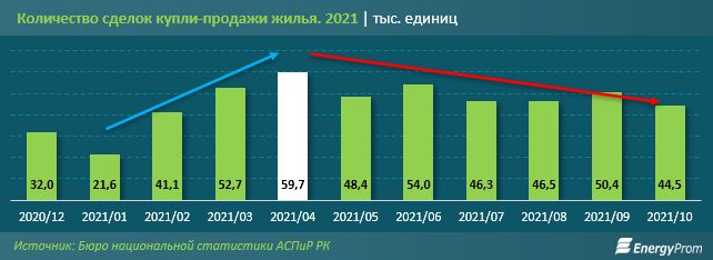Аналогичная динамика наблюдается и в сделках купли-продажи жилья. Так, с января по апрель текущего года количество сделок в секторе активно росло (в январе — 21,6 тыс. сделок купли-продаж, в феврале — 41,1 тыс., в марте — 52,7 тыс., в апреле — 59,7 тыс.). Подобный рост был связан также с появившейся возможностью граждан изымать пенсионные накопления для покупки жилья и с «отложенным» прошлогодним спросом.